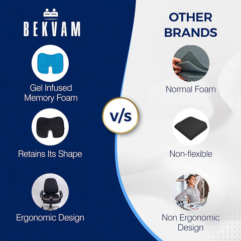 Upgrade your daily sitting experience with the BEKVAM Ergonomic Gel-Infused Seat Cushion. Whether you’re working from a home office, commuting in your car, or sitting for long stretches, our "Cloudy Cushion" technology provides the perfect balance of soft comfort and firm orthopedic support.